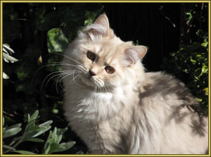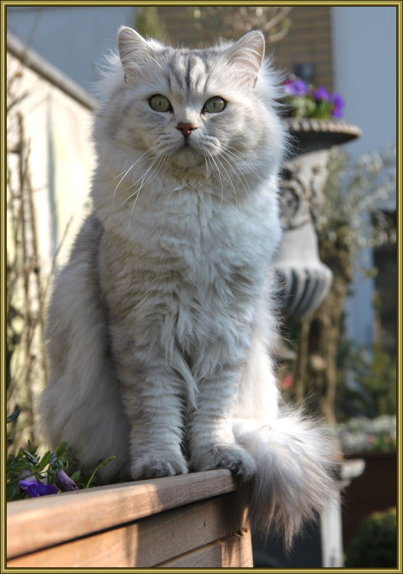 Al mijn katten spelen heerlijk in een afgesloten tuin en genieten van de zon en de wind door hun haren. Om de week krijgt de 'hele familie' een borstel en kam beurt en zien er weer 'show proef' uit.