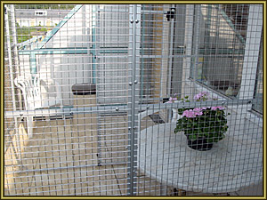 Sinds 16 september 2009 hebben wij op ons dakterras een buitenren laten plaatsen, door Otten Pet Cages www.ottenpetcages.nl, zodat ze ook van de zon kunnen genieten als wij op ons werk zijn.